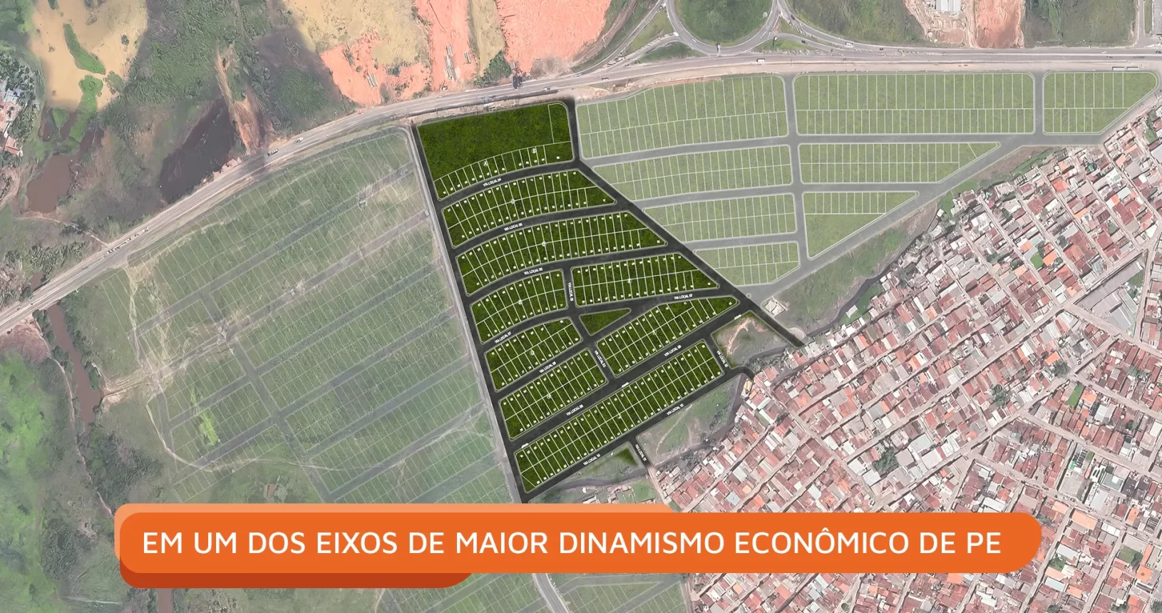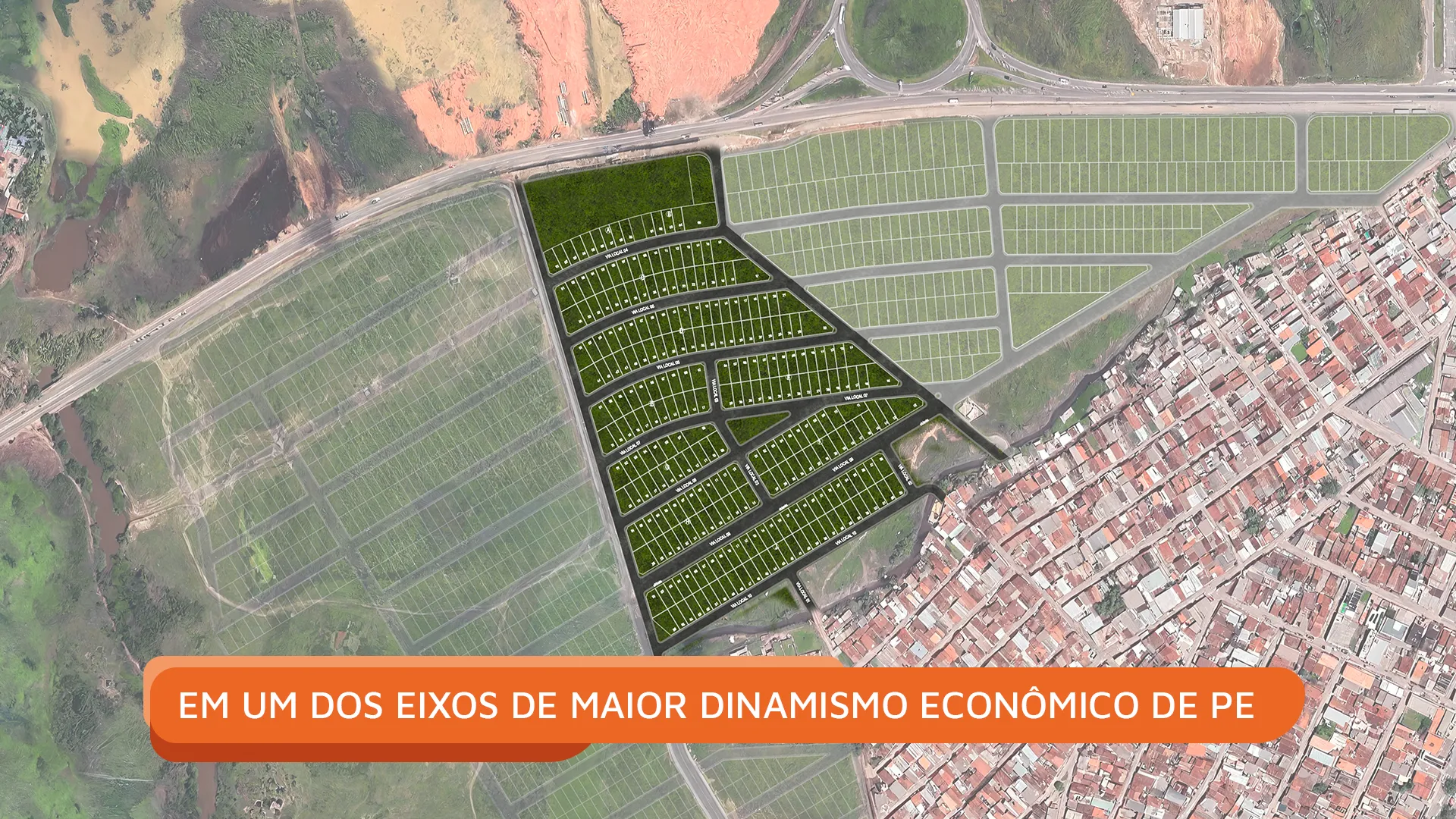 Loteamento Rota de Porto 2, localizado em Ipojuca/PE, aprovado pela Prefeitura Municipal por meio do Termo de Aprovação do Projeto nº 006/2025, registrado sob o R-3 da matrícula 17.394 do RGI de Ipojuca. Algumas informações ou características poderão sofrer ajustes conforme exigências legais e técnicas. Os equipamentos inseridos nas áreas públicas são meramente ilustrativos, uma vez que são de titularidade da Prefeitura de Ipojuca, sendo dela a atribuição da finalidade e construção.