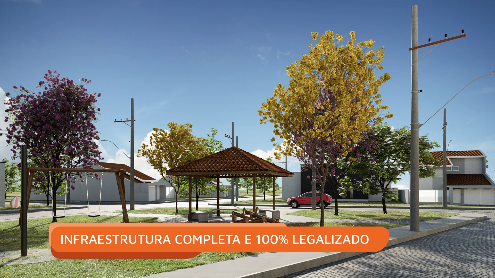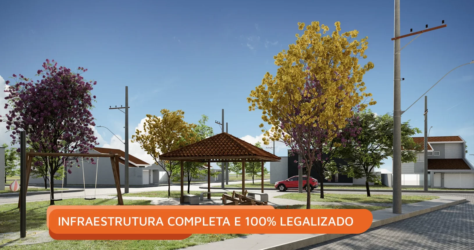 Com infraestrutura completa e 100% legalizado, o projeto foi desenvolvido para oferecer qualidade de vida, organização e segurança, reunindo áreas públicas e espaços de lazer que incentivam a interação social e o convívio entre as famílias.