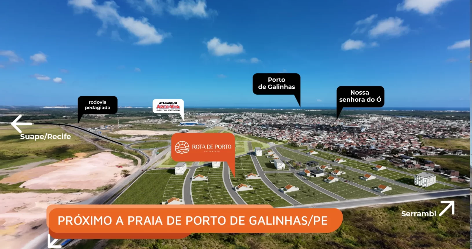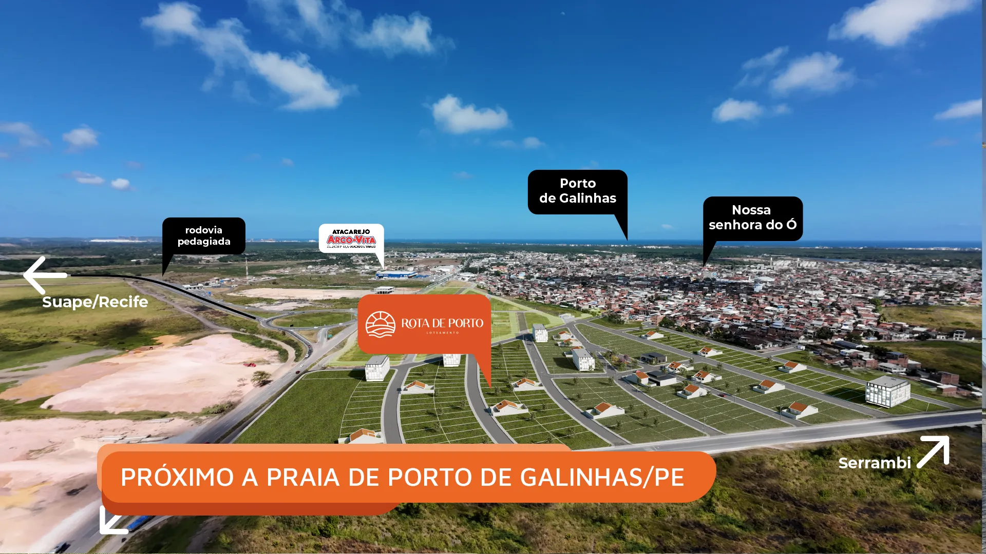 O Rota de Porto – 2ª Etapa é um loteamento planejado da Lotear, localizado em uma das regiões de maior dinamismo econômico de Pernambuco, próximo à Praia de Porto de Galinhas e ao principal complexo industrial do estado, o Porto de Suape.
