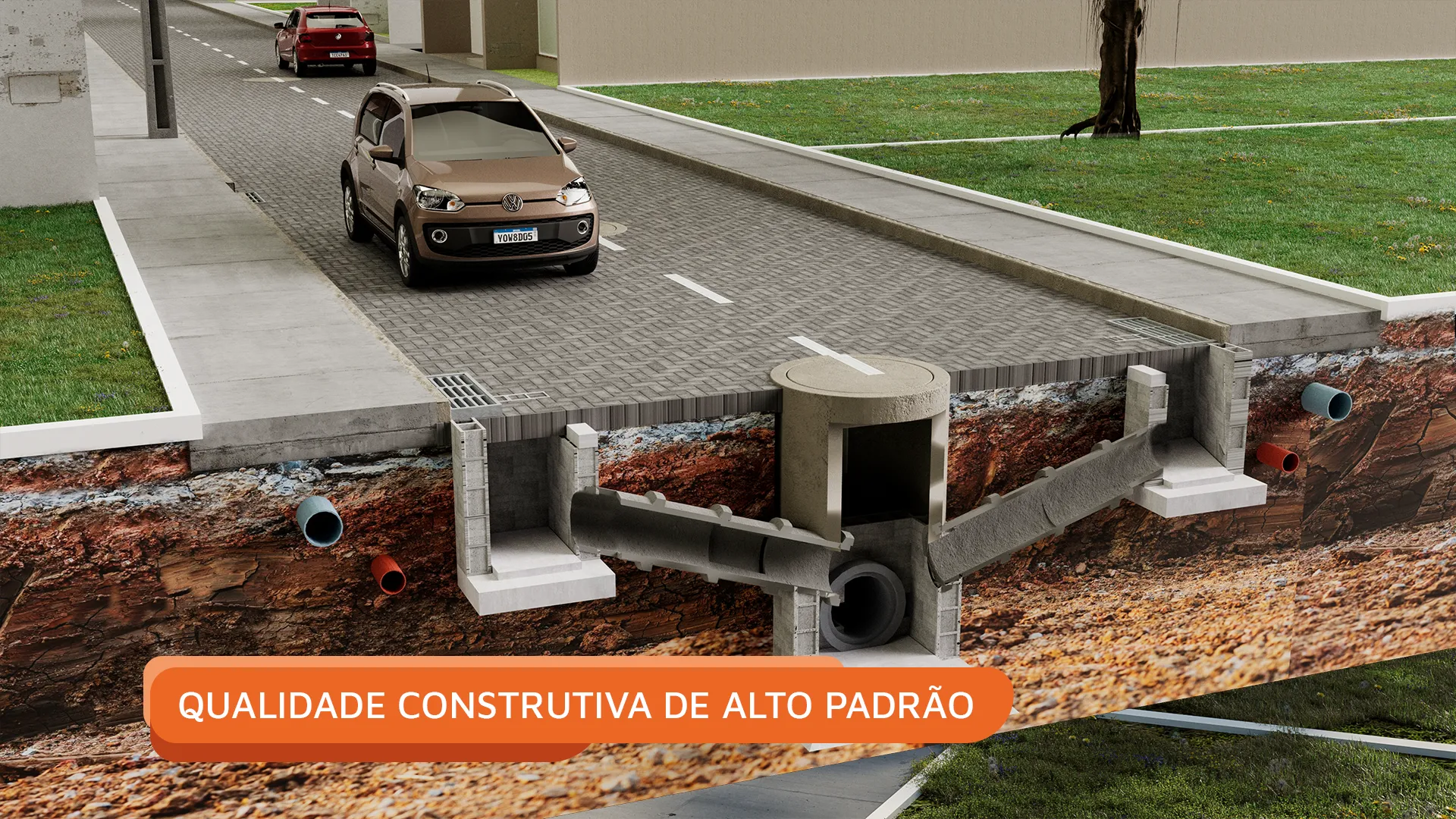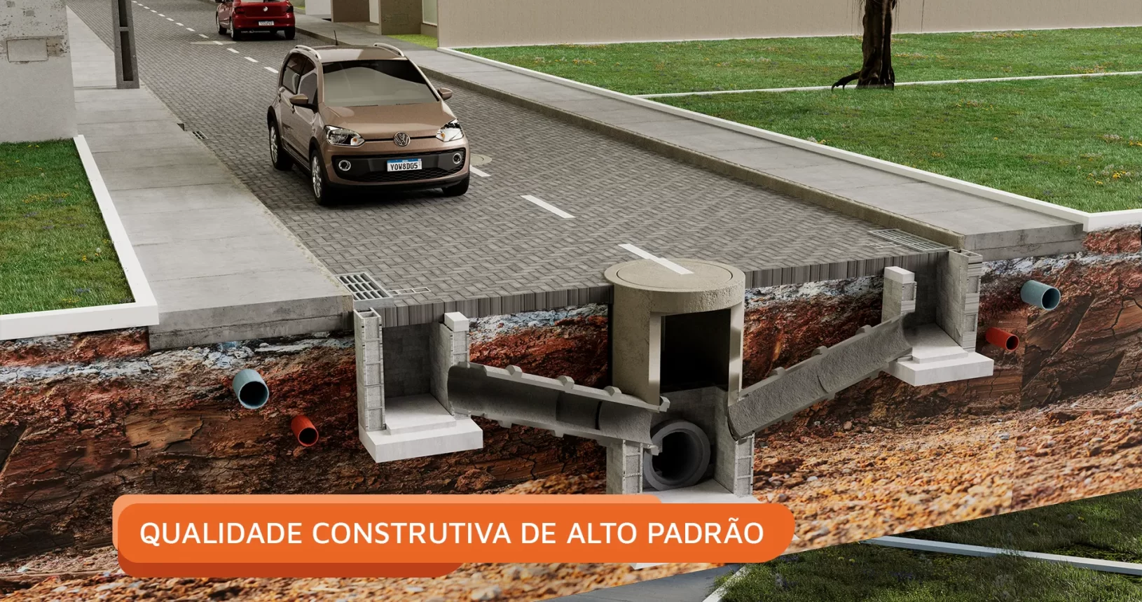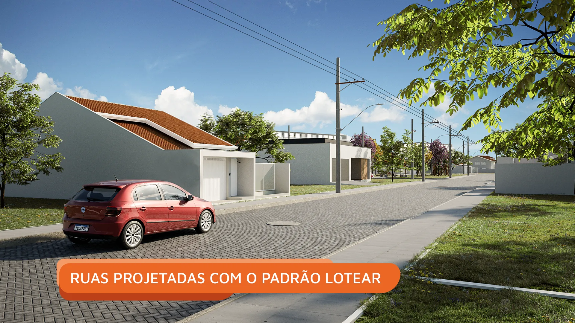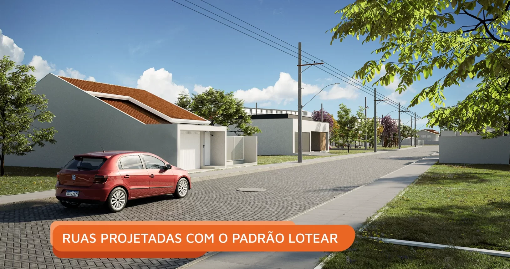 As ruas são planejadas e pavimentadas com o padrão Lotear, e a infraestrutura inclui drenagem, rede de energia e iluminação pública em LED, garantindo qualidade construtiva de alto padrão em cada detalhe.